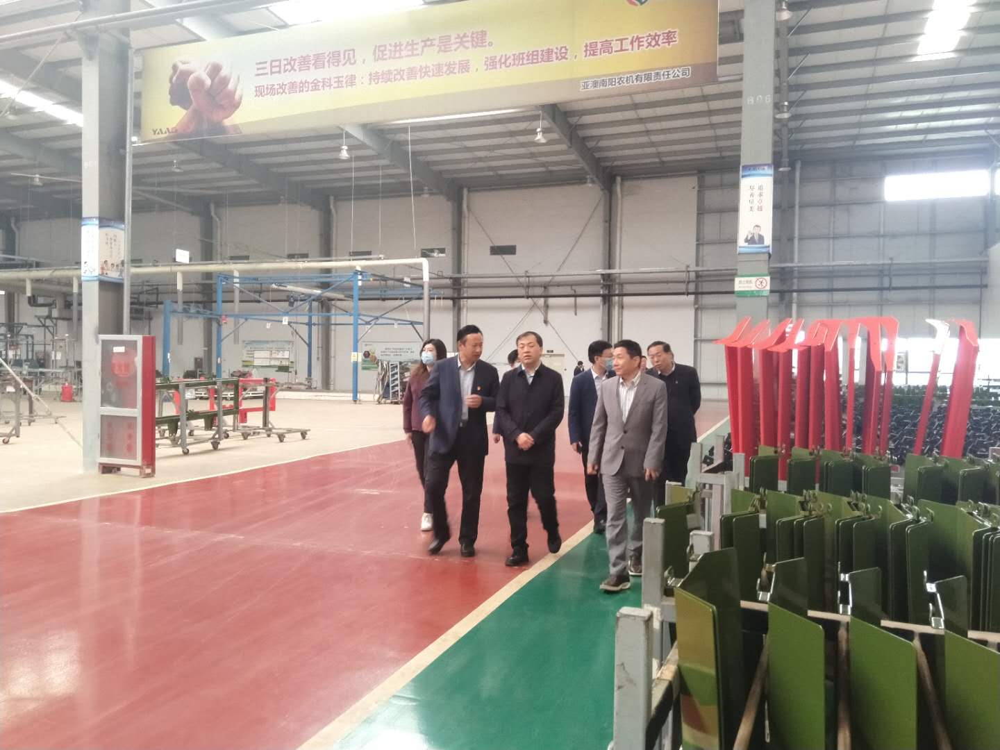 04月21日,河南省市兩委組織部領導考察團在唐河縣委書記周天龍、縣委副書記趙陽等領導陪同下蒞臨亞澳南陽農機進行考察調研。亞澳南陽農機總經理史炳哲先生詳細介紹了亞澳南陽農機全產業鏈模式。