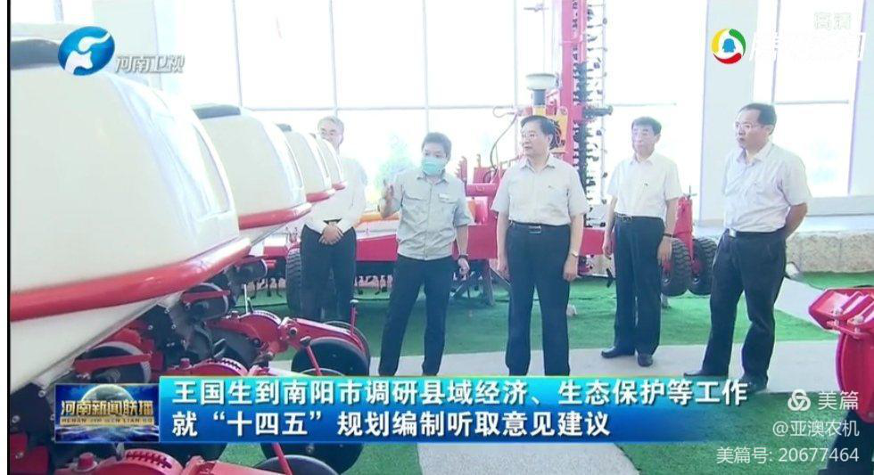 河南省委常委、省委秘書長穆為民陪同調研,亞澳南陽農機總經理史炳哲介紹相關情況!