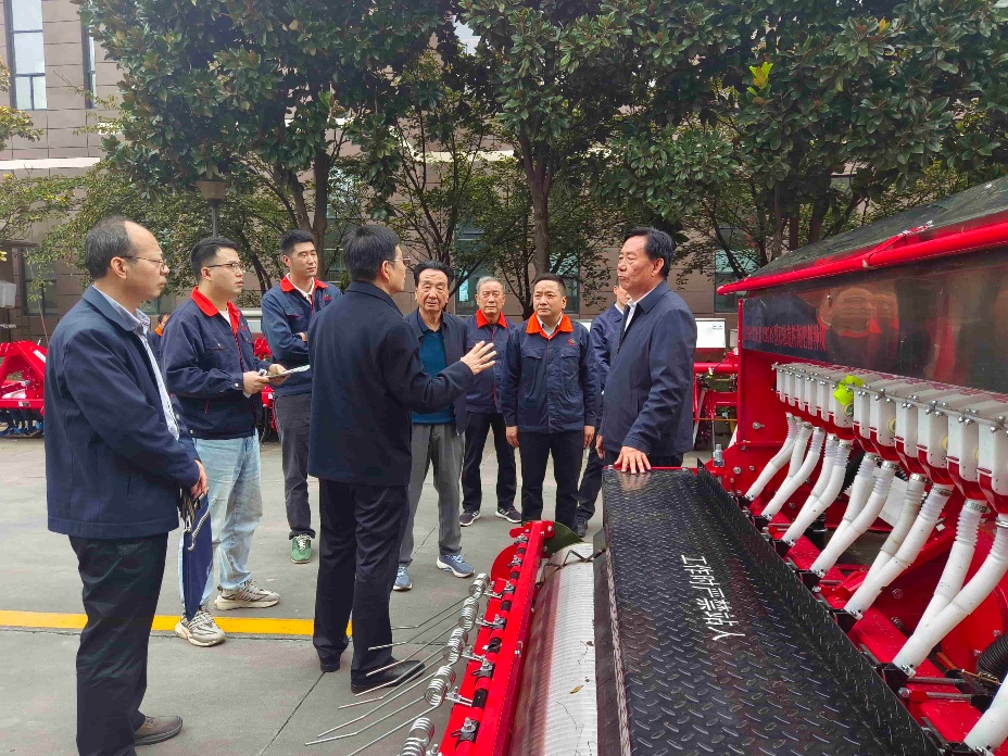 2025年入汛以來,陜西省農業生產遭遇“前旱后澇”極端天氣挑戰,春播期干旱導致土壤墑情不足,汛期連續降雨又引發局部內澇,對糧食生產構成嚴峻威脅。在此關鍵時刻,陜西省農業機械化發展中心主任穆正祥、處長王成及相關科室負責人一行于近日蒞臨亞澳農機開展專題調研指導,為企業抗災農機具研發生產“把脈定向”,為全省“抗淋保糧”行動提供裝備支撐注入權威力量。
